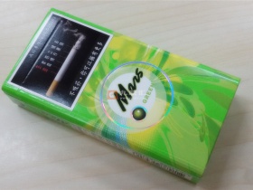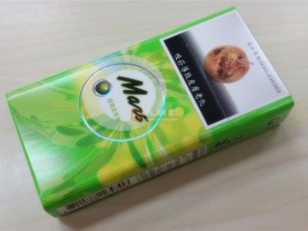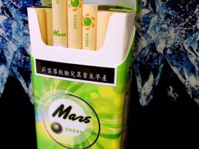 这是一款来自海峡彼岸的香烟,大约上市于2016年年底,据台胞描述,算是近年来非常成功的一包新品,颇受年轻人喜爱。烟盒以果绿色为主调,辅以嫩黄和白色,传递着清爽与食欲。正反两面都是Mars(GREEN)的英文品名,而各种圆环、圆形和迸裂溅射图案显示这是一款爆珠烟。吸烟有害健康的警示图在一定程度上破坏了烟盒的美观,好在其尺度并不恶心。左侧是“马尔斯绿星球烟”的品名及厂家,右侧是条码及理化指标,有意思的是特别标注了爆珠前后的焦油量,这在我抽过的各种爆珠烟中尚属首见。底部有保质期和免税字样。警示图、爆珠前后焦油量、保质期,一峡之隔,风情迥异啊。